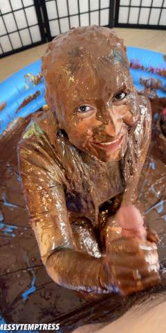 Vols4everus got lowered into a big vat of warm chocolate pudding by Messy Irina