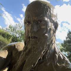 FloHog rolled around with MudRunner on a tarp covered with sludge