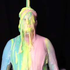 Mr Slime Guy got lowered into a big vat of warm chocolate pudding by megapies